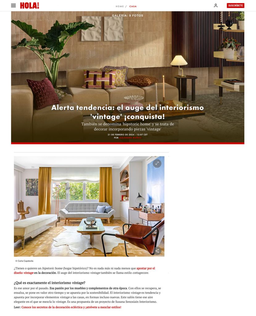 La revista Hola Home publicó en febrero de 2024 un reportaje sobre interiorismo vintage, en el que se destaca el proyecto E&F, realizado en Madrid.