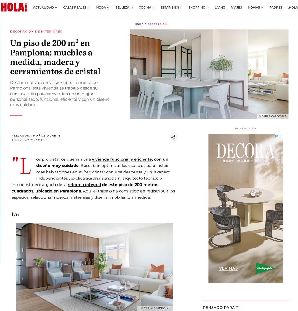 La revista Hola Living en su versión digital, publica en abril de 2025 una entrevista en la que hablamos sobre como transformar un piso de obra nueva en un hogar personalizado y en el que se destaca el proyecto J&A, realizado en Pamplona.
